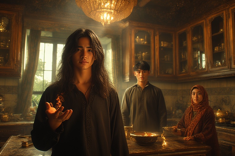 "Tapi... rumah ini kayaknya besar banget, deh..." Beberapa menit telah berlalu sejak Galang meninggalkan kamarnya untuk mencari toilet. Dia telah melewati banyak ruangan seperti ruang keluarga, ruang yang penuh dengan rak buku, juga ruang yang dihiasi dengan senjata-senjata yang tergantung di dinding, dan berbagai ruangan lainnya. Namun, pada akhirnya dia tetap tidak menemukan toilet dan malah berakhir di dapur.