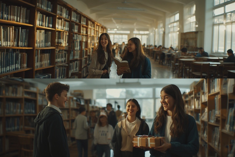Mereka berjalan beriringan memasuki ruang perpustakaan. Rak-rak buku berjejer rapi, begitu pun buku-buku yang tersusun terlihat begitu memanjakan mata. Ruang perpus itu begitu luas, hingga bisa menampung banyak orang juga dilengkapi dengan pendingin ruangan, sehingga siapa pun yang berada di ruangan itu akan merasa adem dan nyaman.