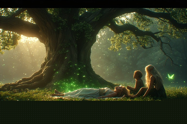 "Ailfryd, gadis ini adalah manusia ... dia telah terkena sihir hitam unsheelie," ungkap Ella dengan suara tertahan. Ada kengerian lain yang masih belum bisa ia sampaikan pada sang suami. Ella tampak sedang menimbang sesuatu. Di satu sisi ia sangat ingin menyelamatkan gadis itu, tetapi di sisi lain sebuah keraguan terselip di hatinya. Terlebih saat ia mengetahui jika yang memberikan sihir pada gadis manusia itu bukanlah peri unsheelie biasa.