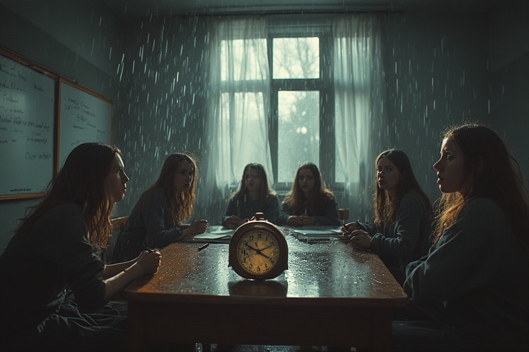 Jadi, ada sebuah ‘dongeng’ turun temurun mengenai sekolah ini. Jam yang dimiliki kelas dimana tempat mereka diam adalah jam kuno yang bisa berbunyi untuk memberikan sinyal dan kode jika ditanyai mengenai hal yang belum diketahui. Syaratnya adalah diam di kelas dari pukul tiga sampai lima sore selama enam hari berturut-turut (meski hari libur) tanpa makan dan minum. Juga, hanya diizinkan membicarakan hal yang baik-baik. Singkatnya, jam ajaib tersebut bisa berkomunikasi dengan cara tertentu tepat di hari ke tujuh.
