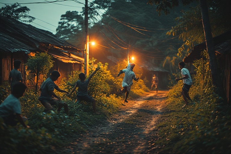 Jaka pun terbangun sambil kebingungan kemana perginya Sugeng dan Hamdani. “Dan!!… Geng!!…, mereka kemana sii??, mana aku sendiri pula. Mending aku cari mereka sekarang.” Ujar Jaka sambil kebingungan. Setelah mencari kesana kemari, Jaka pun menemukan Sugeng dan Hamdani sedang berda di semak-semak “Di situ rupanya klean!! Klean lagi ngapain sii??” “Sstttt!!!” ucap Sugeng dan Hamdani dengan nada pelan secara bersamaan. “Nunduk, Jak!!” ucap Hamdani kepada Jaka, Jaka langsung menunduk dan bertanya kepada Sugeng dan Hamdani “ini ada apaan sih..?” “Itulan pocong yang ramai dibicarakan di kampung kita, Jak. Ternyata memang betulan ada pocong putih” ujar Sugeng dengan raut muka ketakutan, “Kenapa kau ketakutan gitu, Geng…?, kita kan belum tau itu pocong betulan atau bukan..” ujar Hamdani. “Kau ini lemah kali, Geng..! Biar aku tangkap tu pocong sekarang juga” ujar Jaka dengan semangatnya, lalu Sugeng membalas Jaka “Jangan dulu, Jak!!, kita tak boleh bikin keributan malam-malam begini, nanti warga malah pada bangun sambil marah marah ke kita!”, “Betul juga tuhh, gimana kalau kita sergap aja pas dia lewat kebon depan rumah pak RT biar gak kedengeran warga” ujar Hamdani sambil mengangkat kacamatanya. Jaka pun terpukau dengan kepintaran Hamdani “Pintar juga kau, Dan!! Gak heran kau juara kelas terus”.