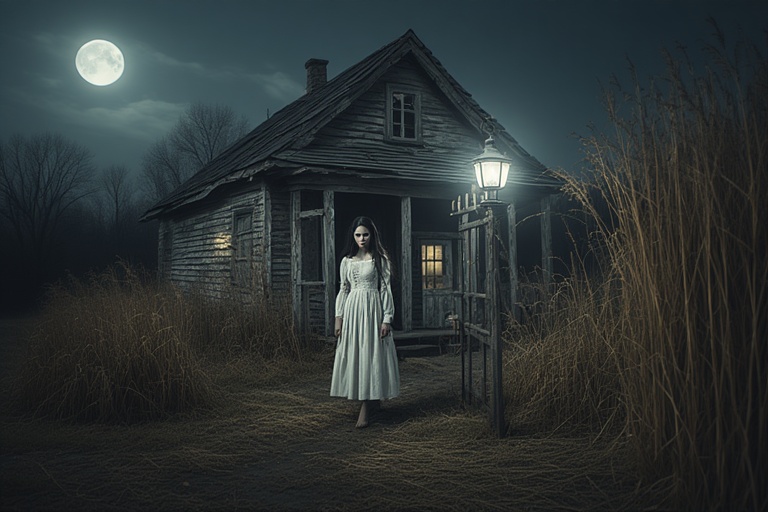 Pintu pagar besi rumah itu sudah penuh karat, berderit keras pada saat dibuka. Mungkin itu memang sebagai penanda datangnya tamu bagi pemilik rumah karena tak lama kemudian seorang wanita ke luar. Ia mengenakan daster warna putih yang panjang sampai menutupi kakinya. Rambutnya panjang dibiarkan tergerai, kulitnya putih pucat, wajahnya lancip, cantik tetapi di ruang mata kirinya kosong. Setelah mendekat, Bram bisa melihat sampai ke dalam rongga mata kirinya itu yang menghitam. Namun mata kanannya sangat indah memancarkan cahaya persahabatan yang misterius.