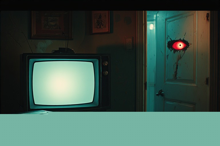 Aku memalingkan mataku jauh dari pintu dan kembali menatap layar TV. Dari celah pintu yang terekam aku melihat diriku duduk di sofa.