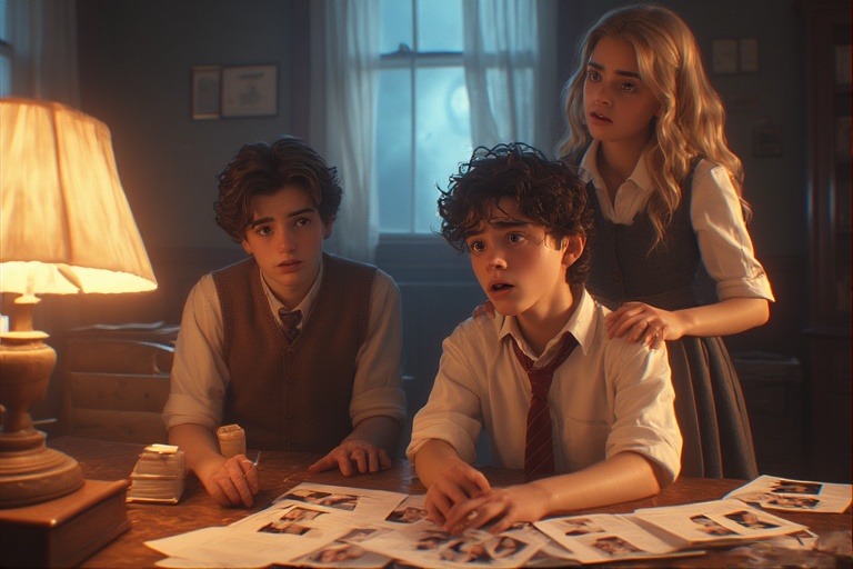 Keenan mengambil satu foto dengan tangan kirinya, sementara tangan lain mengambil kaca pembesar. Foto itu adalah sebuah foto yang menunjukkan salah satu bukti tempat kejadian perkara, setangkai bunga anyelir hitam. Foto itu redup, tampaknya diambil tanpa pencahayaan yang cukup.