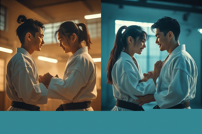 Tepat seperti dugaanku sebelumnya, gerakanku pun masih ada beberapa yang salah dan Ivan pun yang terus membetulkan gerakannku tentunya bukan dengan cara yang lembut dan aku pun tidak berharap demikian karena itu justru akan membuatku jijik. Zahra, pasanganku dalam aplikasi Kata ajakanku pindah ke bagian depan. Aku sebenarnya tidak mau karena di sana ada banyak anak latihan, aku malu kalau mereka tahu aku masih banyak salah dalam gerakan. “Aaaah, Zahra kenapa harus pindah ke depan sih?” Tanyaku pada Zahra dengan gaya berharap dia akan membatalkan niatnya. Tiba-tiba saja aku mendengar suara seorang laki-laki menirukan ucapanku tadi, aku pun menoleh ke arah pemilik suara itu dan ternyata dia adalah Ivan. “Apa-apa sih kamu menirukanku?” Tanyaku pada Ivan dengan nada kesal. “Memangnya kenapa? Suka-suka aku dong. ” Jawabnya dengan enteng.
