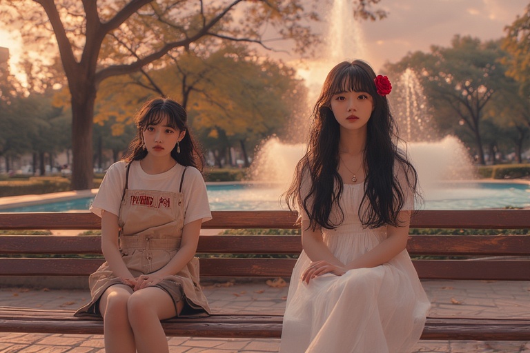 Sebenarnya, hari ini putri Ibu Gendut-eh Ibu Kost berulang tahun. Ya, Bu Kost kalau marah memang menyeramkan sekali. Sesekali kami dihukum menyikat toilet selama satu minggu. Tapi jika moodnya sedang bagus, dia bisa mendadak perhatian kepada kami. Hhh aku masih ingin disini sambil menikmati senja yang indah. Lagipula aku masih lelah. Menunggu sebentar lagi mungkin tidak masalah. Tiba tiba sepasang mataku menangkap seorang gadis yang duduk di bangku di bawah pohon besar. Meskipun agak jauh, tapi masih terlihat jelas rupa gadis itu. Rambutnya panjang tergerai sepinggang, mengenakan gaun putih selutut, kulitnya putih pucat, wajahnya cantik sekali. Dengan bunga mawar merah di telinganya. Gadis itu juga melihat kemari. Mata kami pun bertemu. Entah kenapa dia berjalan ke tempatku duduk. Lalu duduk di sebelahku. Aku pun terheran heran dan mencoba berbicara.