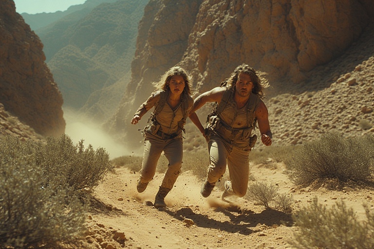 Alya berlari menembus semak berduri, napasnya terputus-putus, lututnya perih, dan udara panas gurun menghantam wajahnya seperti pecahan kaca. Suara tembakan terdengar lagi, memantul di antara tebing batu yang menjulang. Ia menoleh sekilas dan menemukan satu-satunya hal yang membuatnya tetap bergerak, Arga, tepat di belakangnya, wajah penuh debu, tapi matanya masih tajam mengawasi keadaan sekitar.