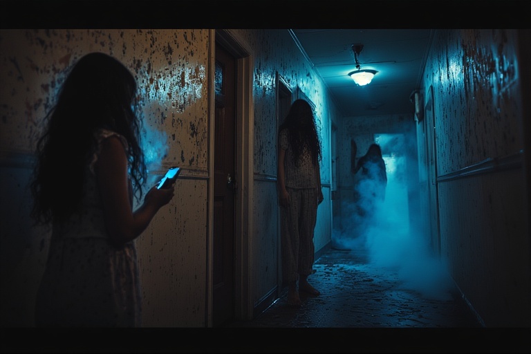 Wanita Menakutkan di Lorong Asrama di Malam Hari