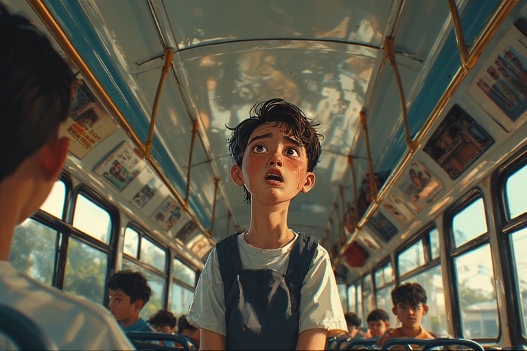 Suatu hari aku mau berangkat sekolah dan menunggu bus sekolah menjemput untuk berangkat sekolah. Tetapi sudah jam 06:45 bus sekolah belum menjemput disitu aku bersama laki laki yang aku tidak kenal, setelah jam 06:48 syukurlah bus sekolah sudah menjemput dan aku langsung bergegas menaiki bus itu. Dan tiba-tiba aku merasa haus dan aku mengambil air dari tas.