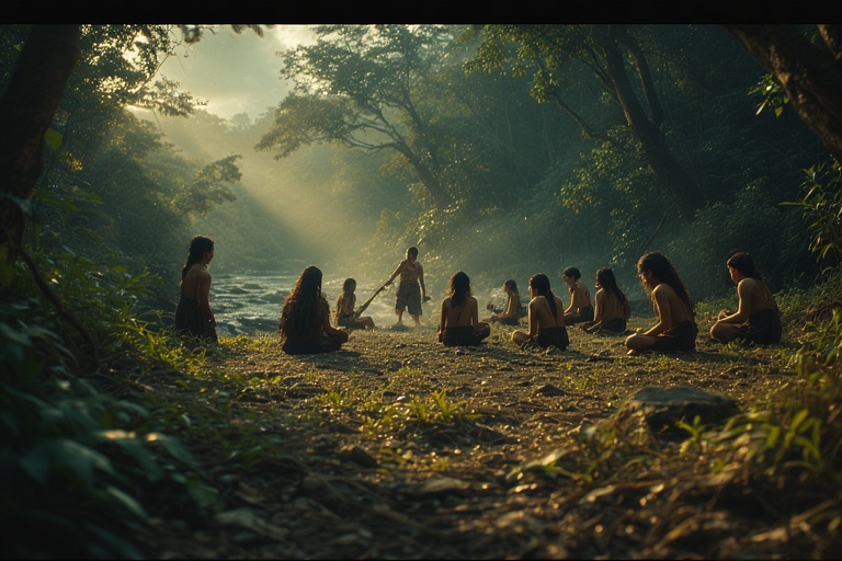 Seperti biasa Jaka Tarub pergi ke hutan untuk mengumpulkan kayu. Tiba-tiba dia mendengar suara dari air terjun.