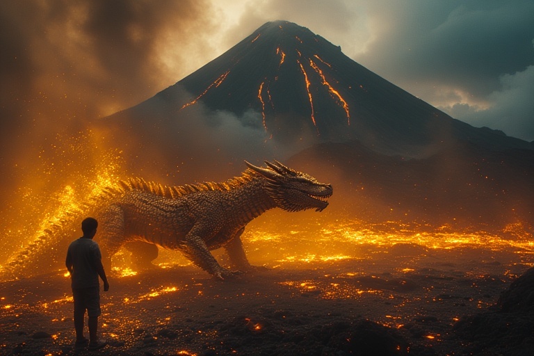 Manik Angkeran pergi ke kawah Gunung Agung dan membunyikan bel. Ia ketakutan saat Naga Besukih muncul. Namun, setelah mendengar keinginannya, naga itu berkata, “Aku bisa memberimu harta seperti ayahmu, tetapi kamu harus berjanji berhenti berjudi. Ingatlah hukum karma.”