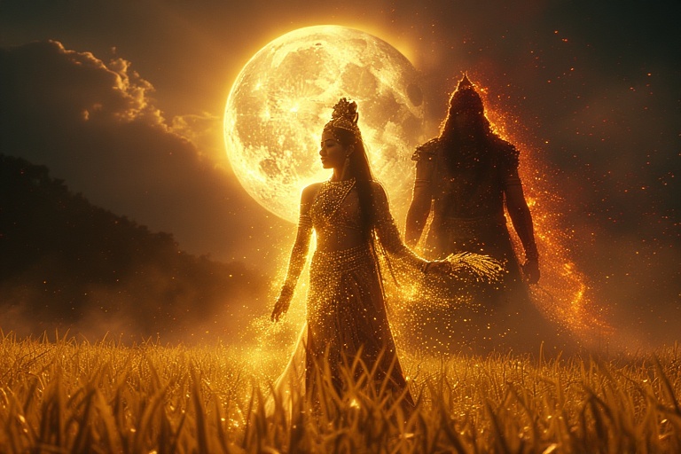 Dan ketika Dewi Sri dan Adikara merayakan panen padi pertama bersama warga di Desa Cidamar, pasukan Sapigumarang yang dipimpin Budugbasu datang untuk merebut semua hasil panen dan menangkap Dewi Sri. Namun Dewi Sri yang sudah sangat sakti berhasil mengalahkan Budugbasu dan semua pasukannya.