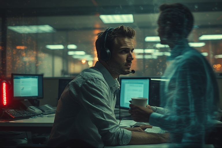 "Jadi pada waktu lima tahun yang lalu, saya baru masuk di call centre ini, sama seperti kamu saya juga ditempatkan di shift tiga, tetapi saya tidak sendiri, ada satu orang lagi bernama Pieter, dan pada saat itu rekan - rekan senior sangatlah jahil, karena mereka melihat kami sangat muda dan tidak berpengalaman, suatu malam mereka bermaksud menjahili kami saat sedang bekerja di shift tiga. suasana sedang sepi aku berjaga diruangan ini, dan Pieter sedang ke pantry untuk membuat kopi supaya kita tidak mengantuk" lalu pak Hermawan terdiam sebentar