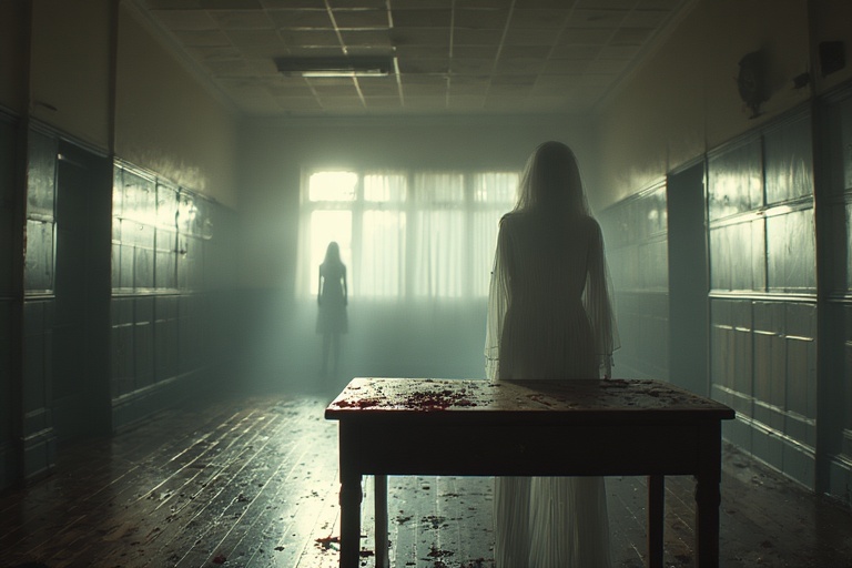 Hingga pada suatu hari ketika aku sedang belajar di kelas badanku terasa dingin dan lelah. Seketika itu pula aku melihat kejadian tragis yang menimpa seorang gadis. Mungkin dia adalah pemilik bangku terlarang itu. Aku melihat jelas ketika gadis itu sedang duduk membereskan alat tulisnya, dan tiba-tiba muncul seorang yang ingin membunuhnya. Awalnya dia berusaha berlari dan mencari pertolongan. Namun apa daya, karena sekolah sudah sepi. Akhirnya ia terbunuh.