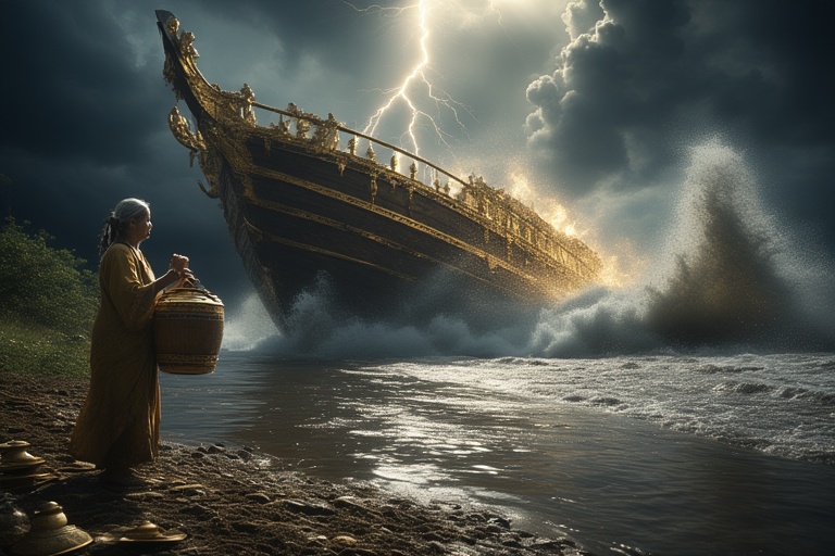 Badai lahir dari langit yang kelam, menyambar kapal megah itu.