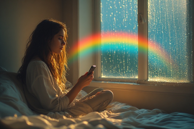 Aku menatap kosong keluar jendela. Hujan menyisakan pelangi sebagai penghias langit.
