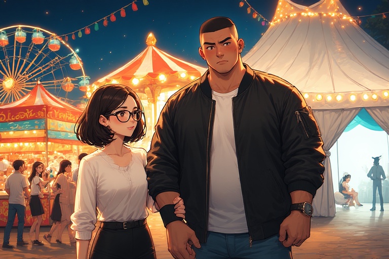 Pernah melihat seekor banteng bertanduk besar berjalan dengan boneka porselen yang mungil? Seperti itulah rupa Jaka dan Ratna saat mereka sedang menghabiskan waktu malam minggu mereka di pekan raya.