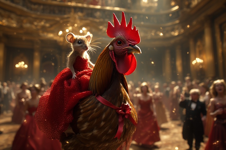 Putri Merah biasanya tidak mau datang ke pesta. Namun hari itu, ia ingin melihat Pangeran Aldo yang terkenal tampan dan gagah. Maka ia pun memakai gaun merahnya dan naik ke punggung seekor ayam jantan sahabatnya. Putri Merah mengikat sehelai pita merah di leher ayam itu sebagai tali kekang. Ia lalu pergi ke pesta ulang tahun ibunya.