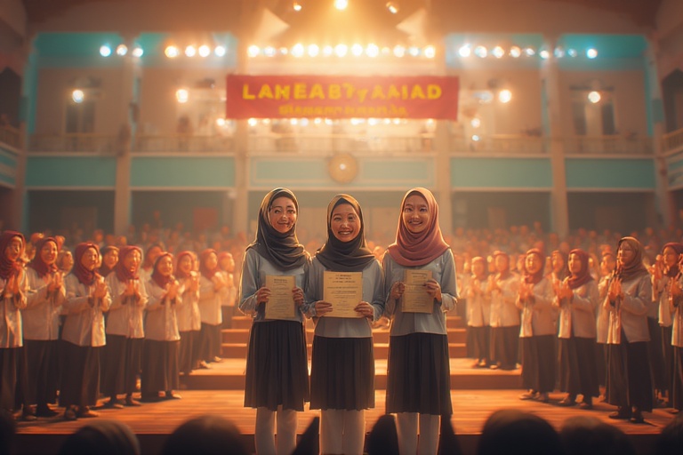 "Untuk peraih nilai tertinggi keempat diraih oleh... Tika." Ucap moderator. Tika langsung memeluk Iis ketika mendengar namanya disebut.