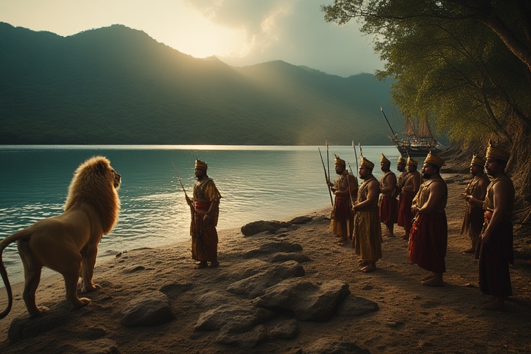 “Itu adalah singa, Yang Mulia. Ia memang terlihat cantik, namun ia adalah binatang buas. Raja harus berhati-hati jangan sampai mendekatinya.” jawab Panglima kerajaan.