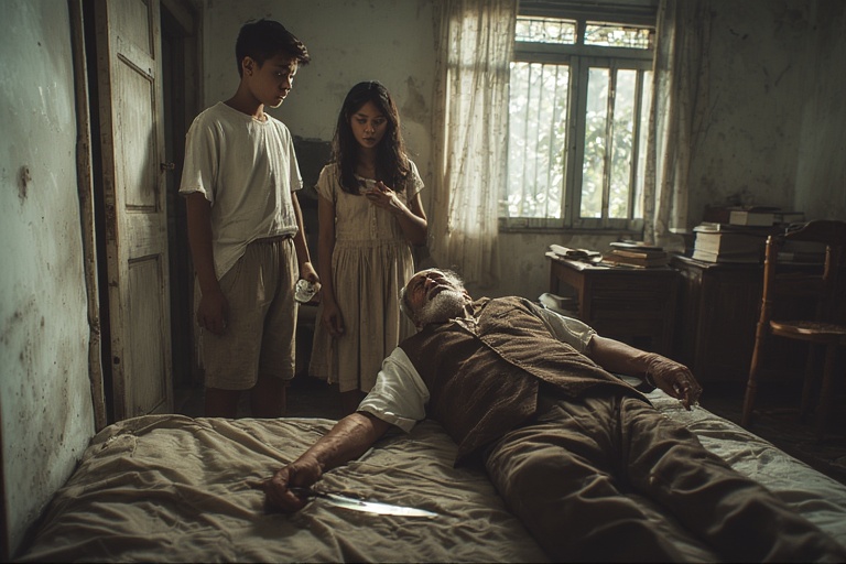 Teriakan keluar begitu saja setelah Elisa membuka pintu kamar. Nafas mereka memburu, kaki mereka bergetar. “Astaga!” jerit Elisa sambil menyembunyikan wajahnya di pundak adik laki-lakinya. Mata Ian melebar, tak percaya apa yang mereka lihat.