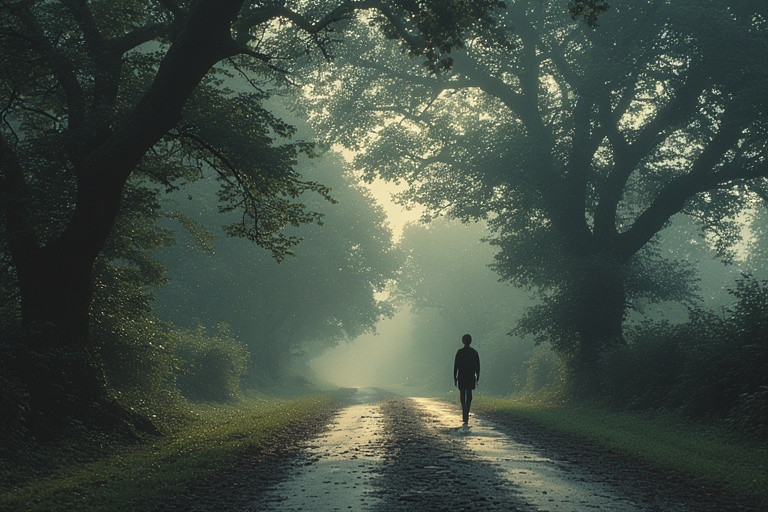 Suasana di jalan ini masih sama seperti hari biasanya jika aku melewatinya, Sepi. Baru jam 4 lebih 10 menit tapi suasananya sudah hampir seperti malam. Mendung, dan pohon pohon di sekitar jalan ini terlalu rimbun jadi nampak gelap. Aku merasakan ada air menetes di mukaku. “Ah, gerimis. Aku harus lebih cepat sampai di rumah sebelum hujan.” Begitu pikirku.