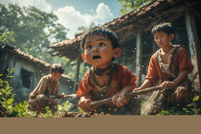 Di sana telah ramai oleh para kurcaci yang sedang membersihkan lapangan.